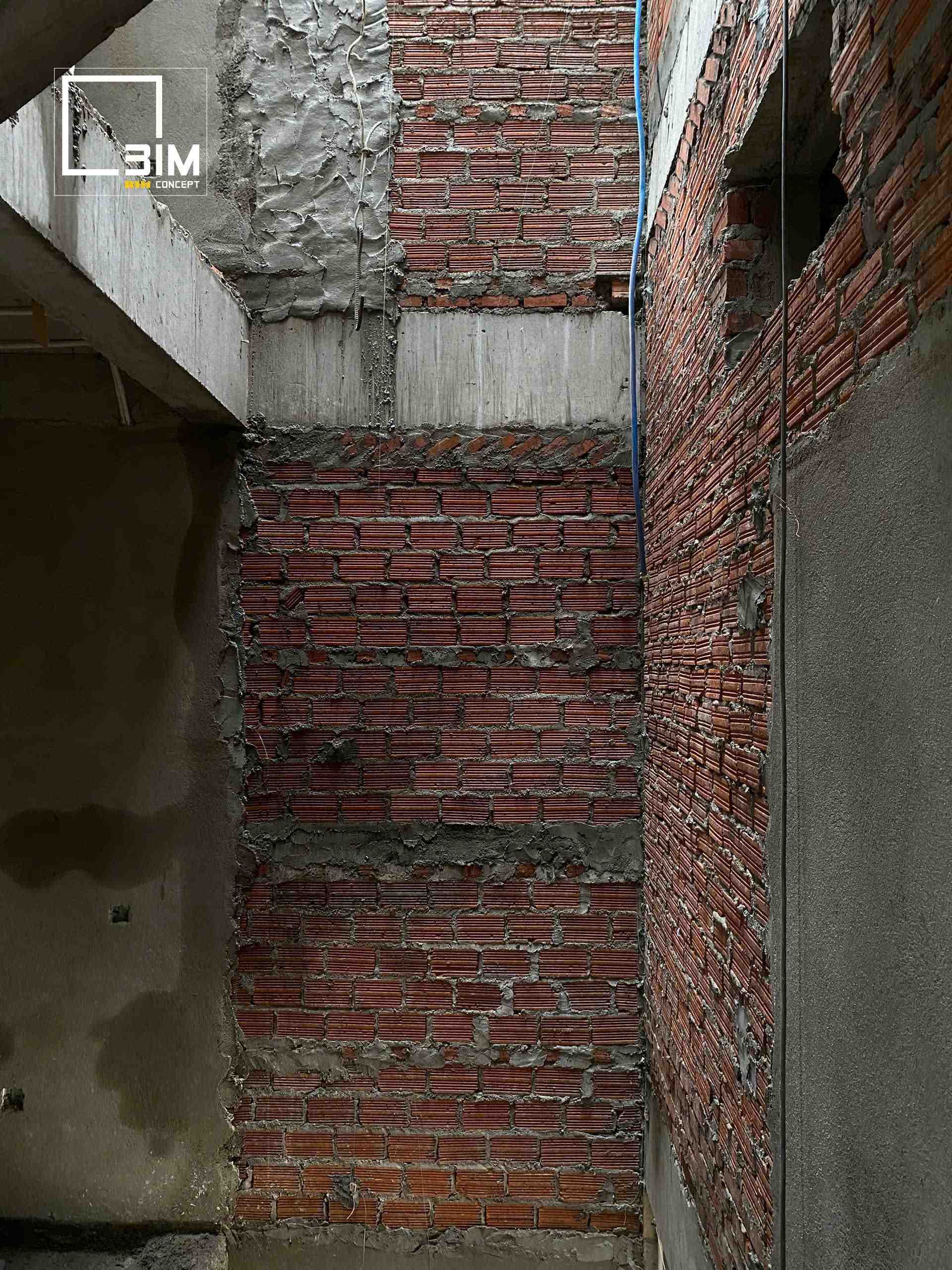 Công trình nhà phố 3 tầng này đang bước vào giai đoạn tô tường và cán nền. Đây là khâu hoàn thiện phần thô quan trọng, giúp tạo mặt phẳng vững chắc và thẩm mỹ cho các bước thi công tiếp theo. Đội ngũ thợ lành nghề của Bim Concept luôn chú trọng độ chính xác, đảm bảo tường phẳng, nền chắc và đúng kỹ thuật. Tiến độ này đánh dấu bước chuyển quan trọng trước khi công trình bước sang giai đoạn hoàn thiện nội thất.